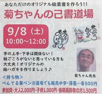 9/8(土)菊ちゃんの己書道場